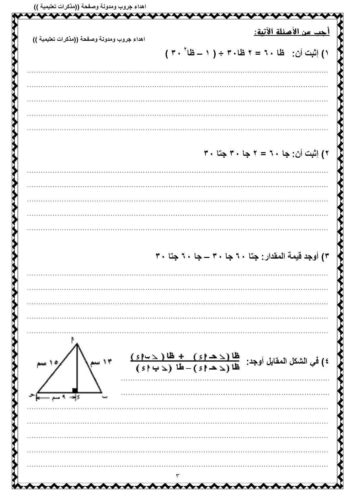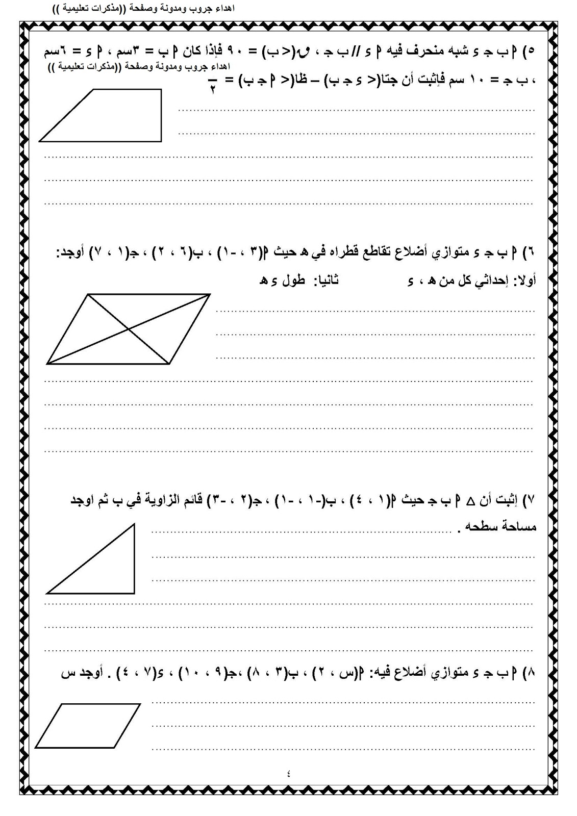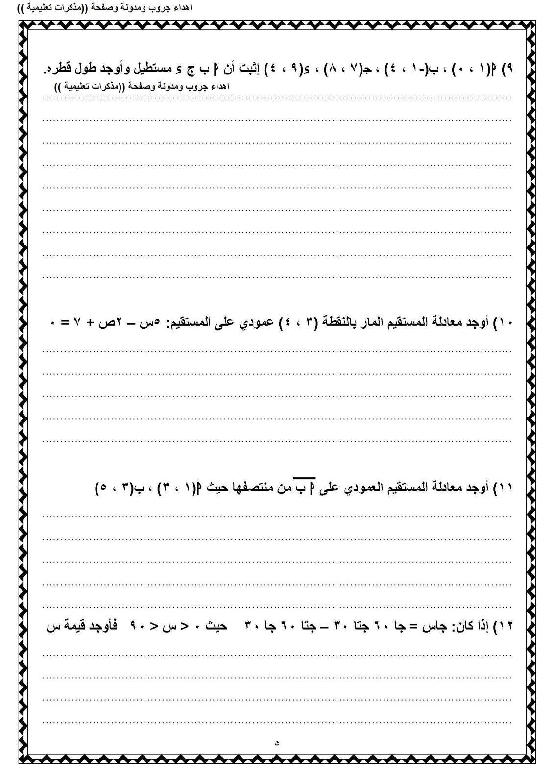 مراجعة ليلة امتحان الهندسة للصف الثالث الاعدادى الترم الاول 2016 فى خمس ورقات بالاجابات