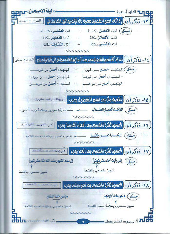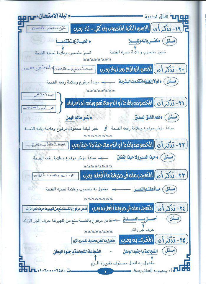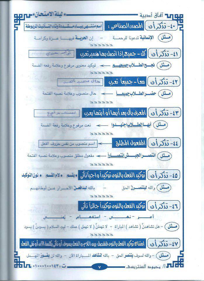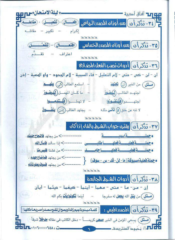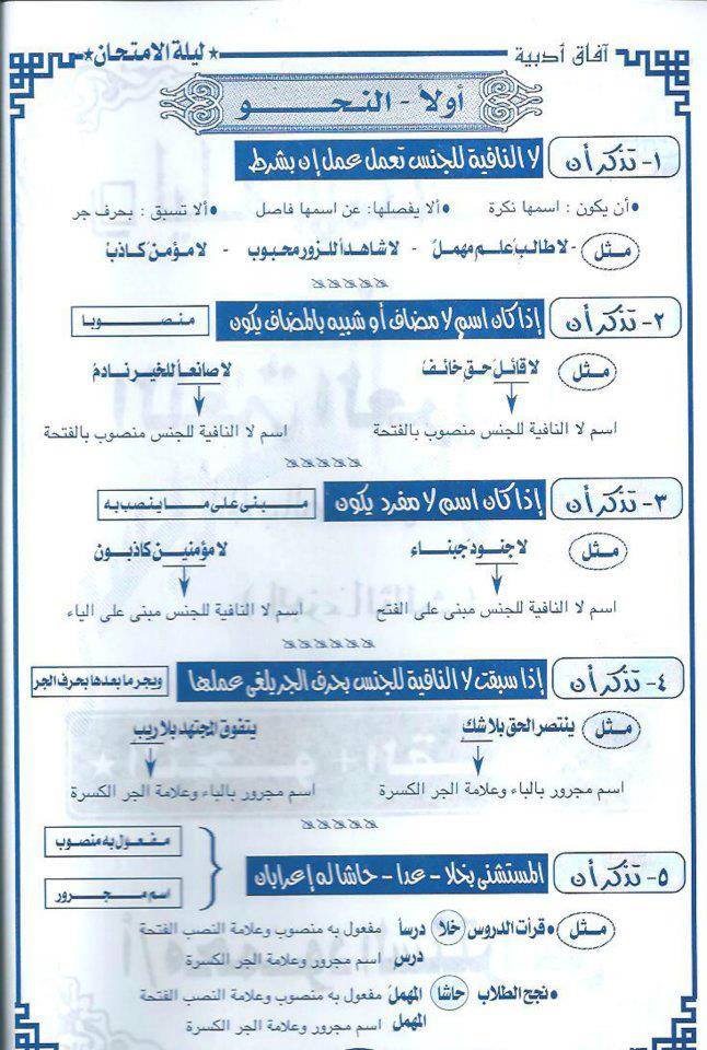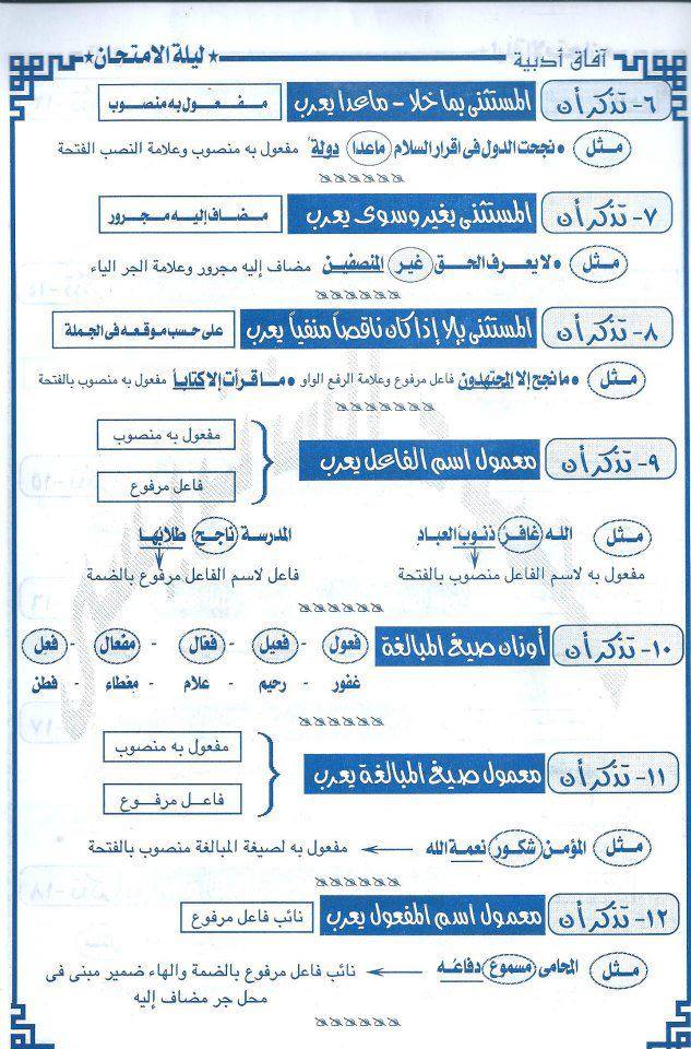 أولي مراجعات ليلة الامتحان في اللغة العربية