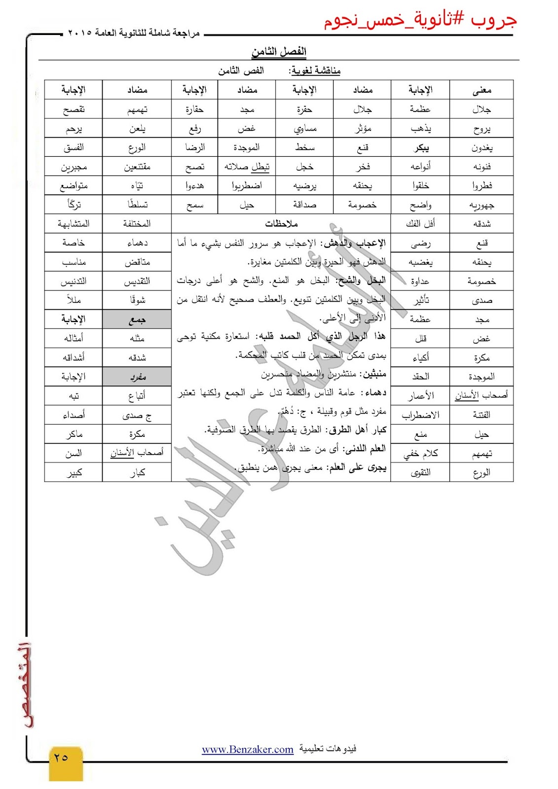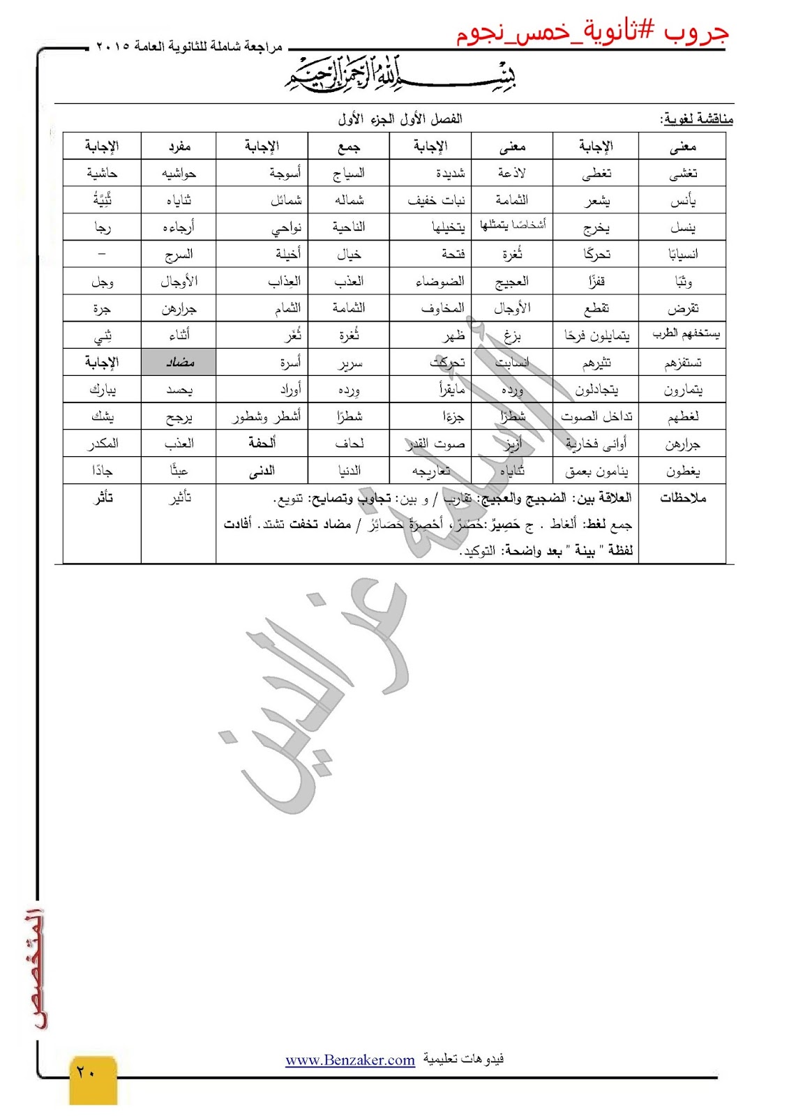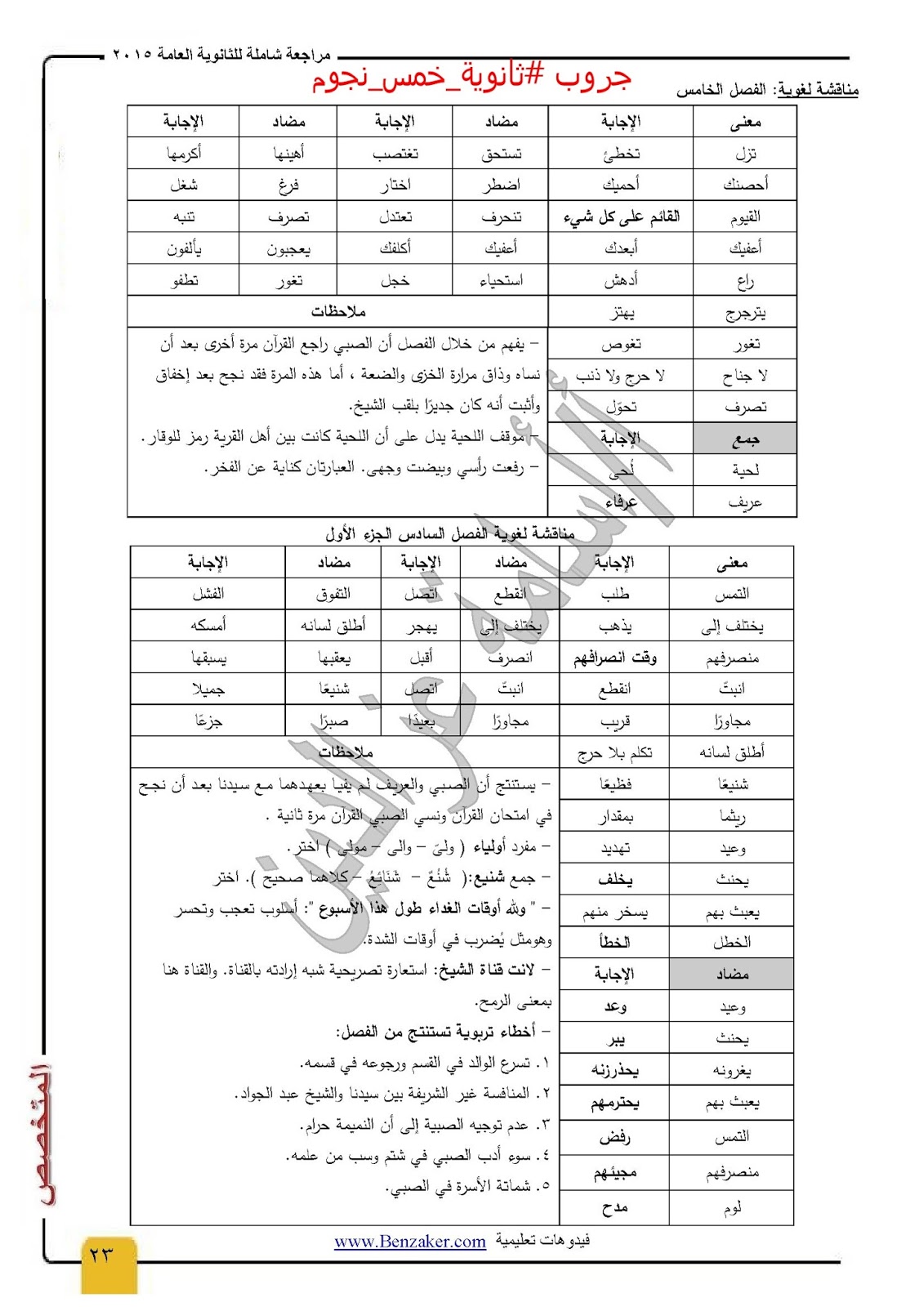 أولي مراجعات ليلة الامتحان في اللغة العربية