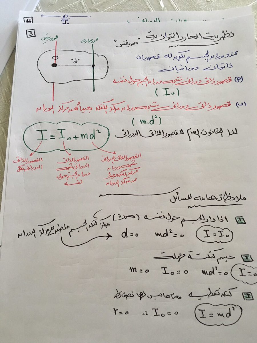 شرح مصور لدروس الفيزياء : القصور الذاتي الدوراني. شكرا لجهد من أعدها. #فيزياء12ع #اختبارات