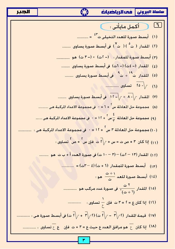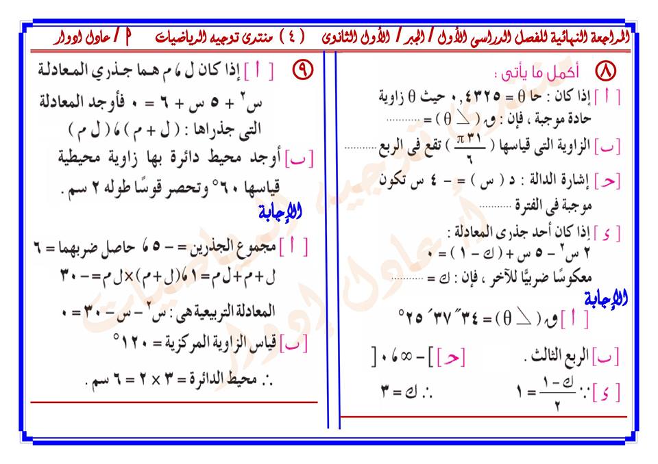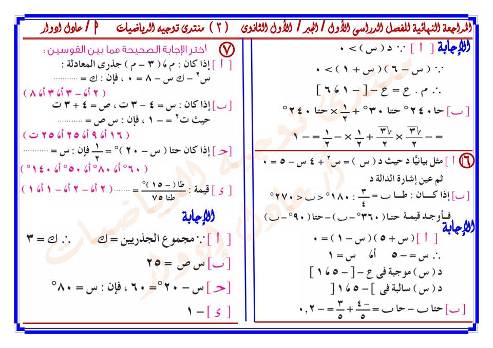 راجع كل شئ فى الجبر وحساب مثلثات بشكل مختصر ومهم ومعنا تحصل على الدرجة النهائية وهذة المراجعة لن يخلو امتحان منها ولن يخرج عنها امتحان نصف العام الترم الاول او نهاية الترم الاول لطلبه الصف الاول الثانوى المذكرتين عبارة عن صور تضغط على الصورة وتحملها على جهازك مباشرة بدون روابط والمراجعة هذة عبارة عن مذكرتين او مراجعتين لاساتذة مخلفين الاولى للموجه الاول رياضيات الاستاذ عادل ادوارد والثانية للمدرس الاول فى مادتة البيرونى خالد