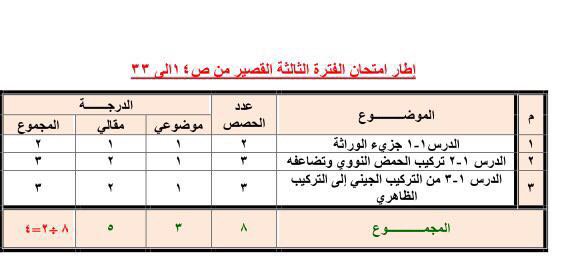 #محتوى اختبار القصير لمادة #احياء11ف3