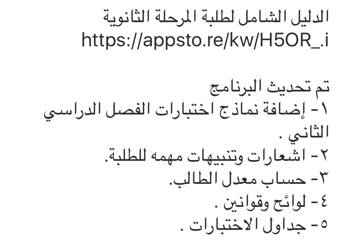 الدليل الشامل لطلبة المرحلة الثانوية https://appsto.re/kw/H5OR_.i تم تحديث البرنامج