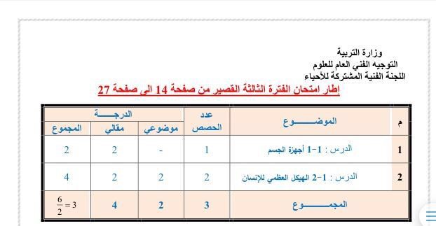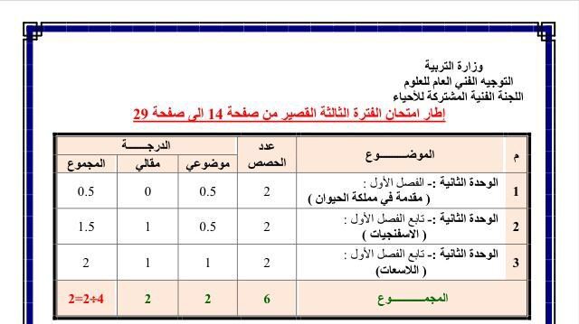 جدول امتحانات نعاية الفترة الثالثة للصف العاشر 2016/2015