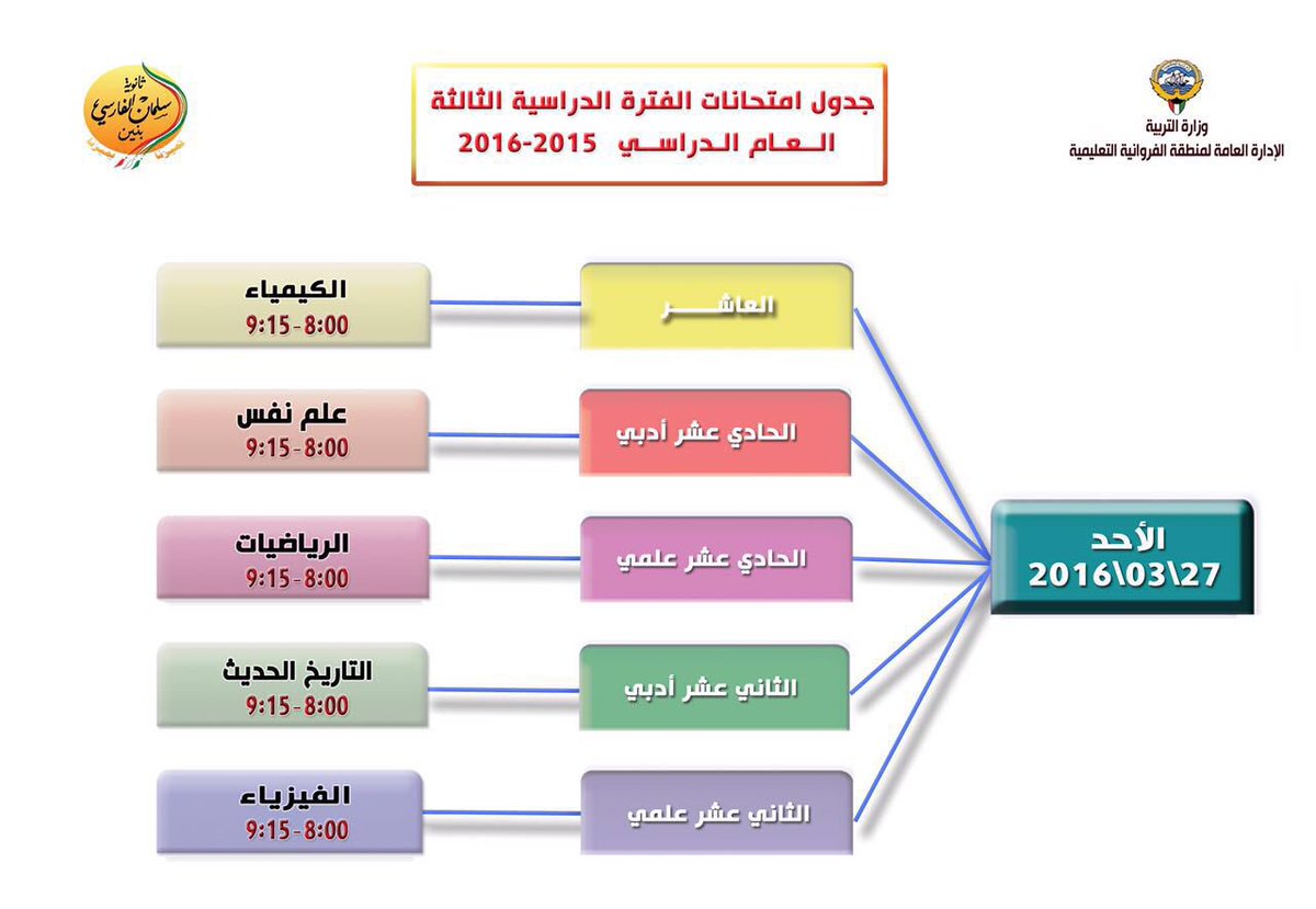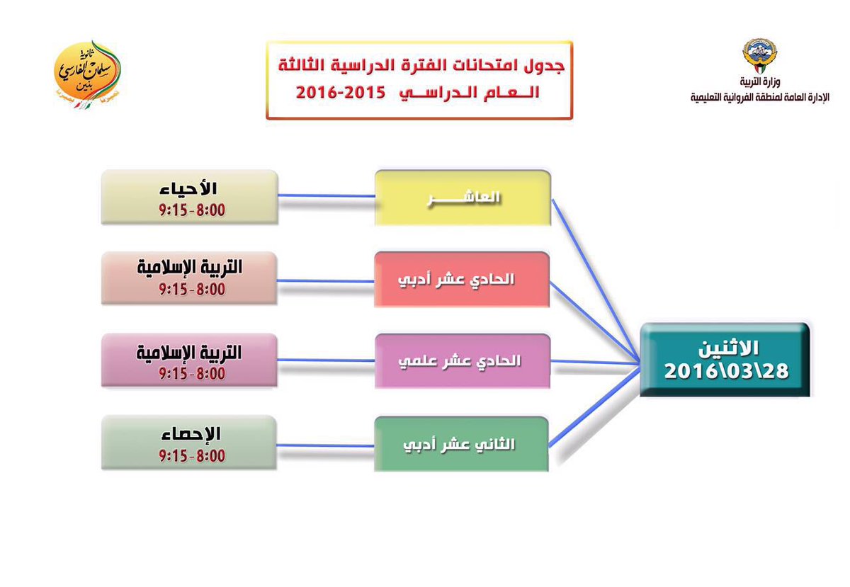 جدول امتحانات الفترة الدراسية الثالثة 2016/2015 للمرحلة الثانوية