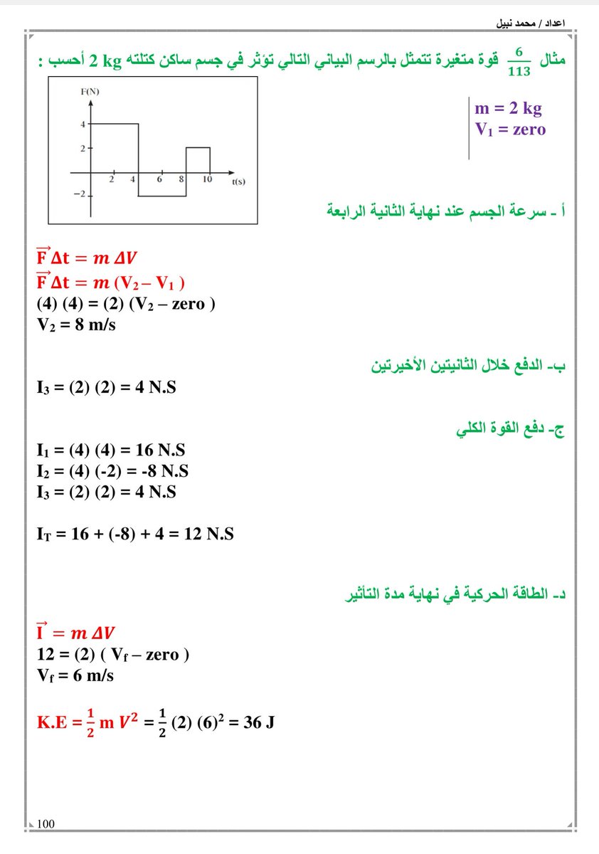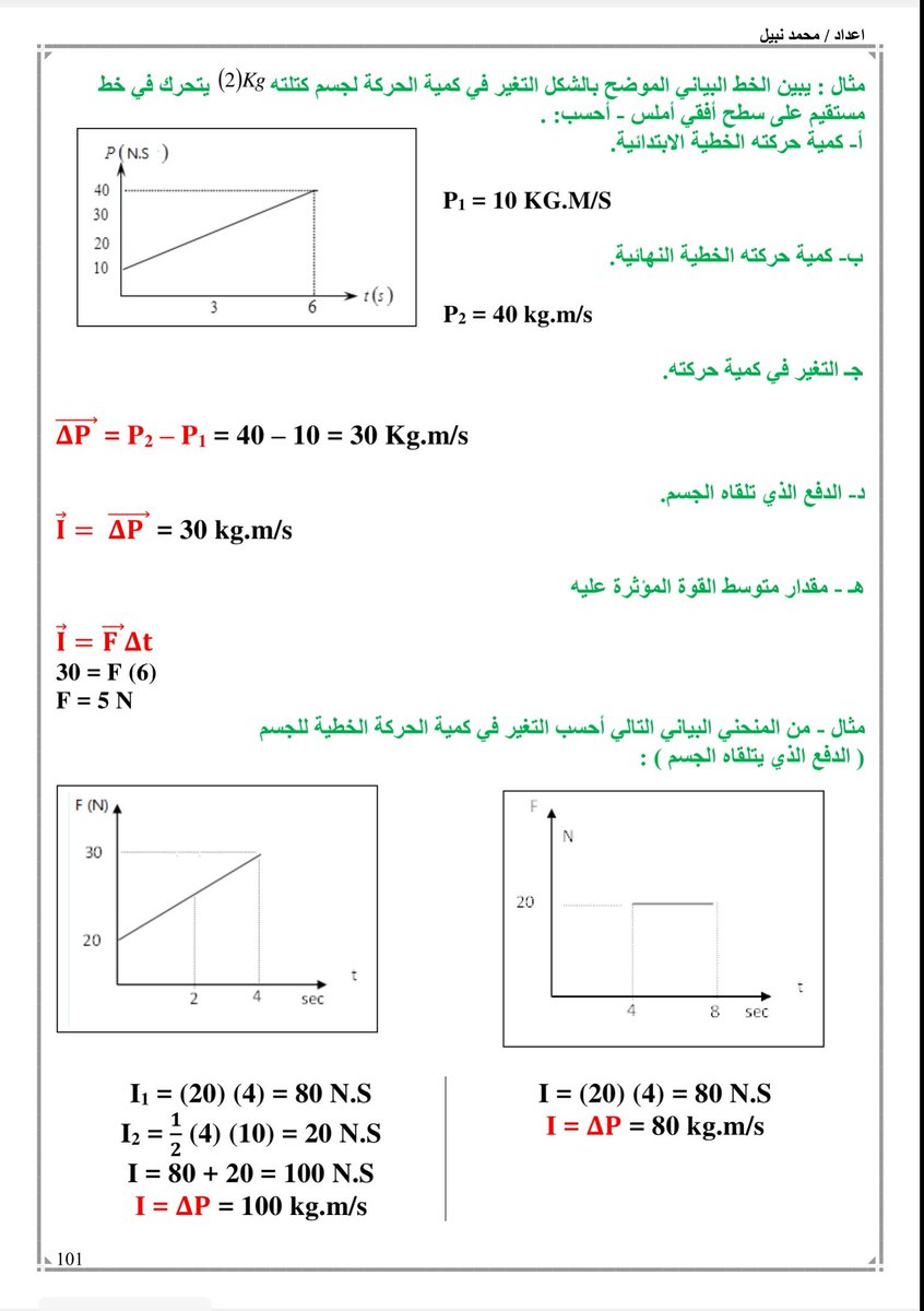 #فيزياء12ك1 مسائل كمية الحركة والدفع الحساب اعتمادا على بيانات الرسم البياني مهمة جدا غالبا تأت بالاختبار