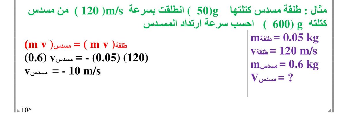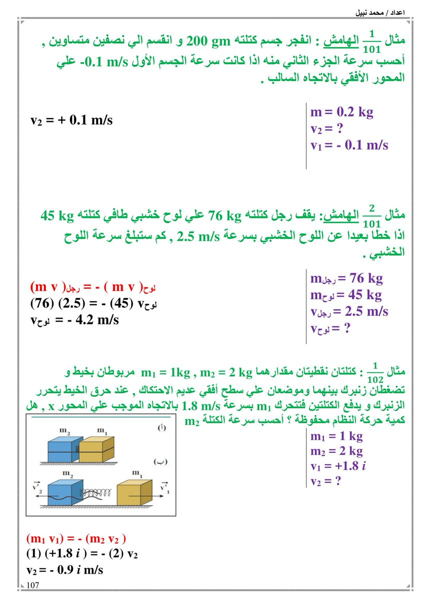 #فيزياء12ك1 مسائل حفظ كمية الحركة مهمة جدا غالبا تأت بالاختبار كسؤال موضوعي