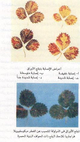 يتسبب عن الفطريات المسببة لتبقعات الأوراق منها : Mycosphaerella fragariae