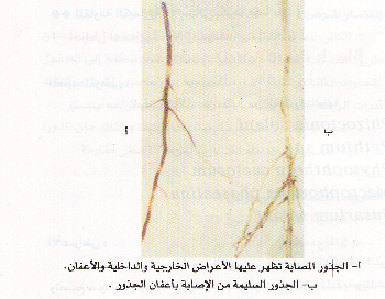 ب الجذور السليمة من الإصابة بأعفان الجذور .