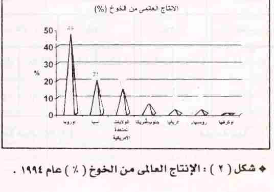 وفى مصر تزداد الكمية المصدرة من الخوخ بمرور السنين خصوصاً من الأصناف المبكرة النضج والتى تظهر فى الأسواق قبل بداية ظهور محصول الدول المنتجة الأخرى بمدة طويلة ، وقد كانت مساحة الخوخ فى مصر عام 1982 حوالى 2.7 ألف فدان والإنتاج تسعة آلاف طن من المساحة المثمرة وفى عام 2001 وصلت المساحة إلى حوالى 78ألف فدان وزاد الإنتاج إلى حوالى 224 ألف طن من المساحة المثمرة أيضاً شكل 1 . ويزيد من أهمية الخوخ نجاح زراعته فى سيناء تحت ظروف المطر . هذا ويصل متوسط محصول الفدان مابين 8 - 12 طن تحت ظروف الزراعة المروية ومابين 3 - 4 طن للفدان تحت الظروف المطرية ، الأمر الذى يعطى عائداً مرتفعاً للمزارع .