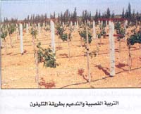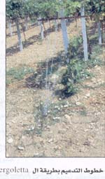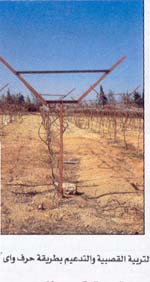 نفس خطوات التربية السابقة من حيث تربية الساق والأذرع والقصبات والدوابر إلا أن القصبات الثمرية يتم ربطها كما هو موضح بالرسم علي السلكين القاعديين من كل ذراع من أذرع حرف Y .