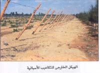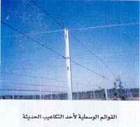 * ويجب فصل كل جهة من الجهات الأربع للتكعيبة عن بعضها بقوائم رئيسية - كذلك يتم عمل كتل خرسانية تحت سطح التربة بحوالي 1 - 1.5 متر لربط أسلاك الشد الخاصة بنهاية الخطوط بها وهذه الأسلاك رقم ( 8 ) مضفرة .