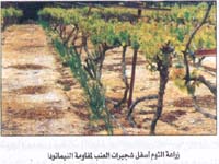 1- الحد من تفاقم تواجد مصادر التلوث السابق ذكرها مثل عدم إضافة أسمدة عضوية ملوثة أو تربة ملوثة وإزالة الحشائش وحفر نفق بعمق متر يفصل مابين مصدات الرياح وخاصة الكازورينا وبين أول خط من خطوط العنب لمنع تداخل الجذور .