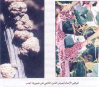 - تبدأ الإصابة عند سريان العصارة فى الربيع وتستمر خلال فصل الصيف ثم تنتقل الإصابة إلى العناقيد الثمرية .