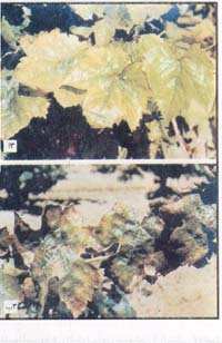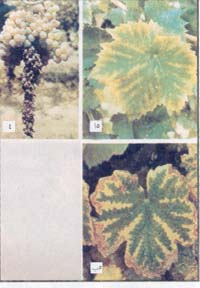 2- بإضافة أملاح الحديد مثل كبريتات الحديدوز إما رشاً على أوراق العنب أو نثر ملحها على سطح التربة تحت الشجيرات .