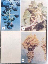 نقص الزنك على العنقود يظهر فى صورة وجود حبات صغيرة كثيرة بالعنقود .