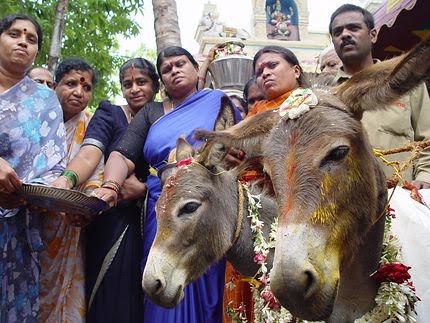 في الهند وضمن التقاليد الغريبة قام بعض المزارعين في اقليم بارادش في جنوب الهند بعمل حفل زفاف جماعي لاكثر من مائتي حمار وذلك املا في ان يتسبب ذلك في حلول البركة وتسافط الامطار بعد موسم من الجفاف جعل اوضاعهم سيئة والحق بهم المجاعة.