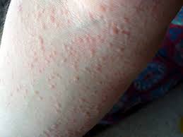 بسبب آفة جلدية مميزة تسمى اللحبة أو الانتبار الشروي (تتكون لطخات جلدية حمراءمرتفعة عن سطح الجلد شديدة الحكاكة). يكمن أن تحدث هذه الآفة في أي مكان من الجسم بقياسات مختلفة حيث يتراوح نصف قطر اللحبة من 0.5 وقد يصل لمرحلة يغطي فيها كل سطح الجسم.