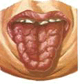 · نشفان اللسان وتشققه نسبة وجودها في متلازمة داون 53-71 %، نسبة وجودها في الأطفال العاديين 25-50 %