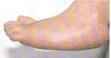 · القدم ممتلئة ، ذات أصابع قصيرة وعريضة ، وتكون القدم مفلطحة.