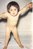 · البطن منتفخ ، وقد يكون هناك عيوب في الصدر.