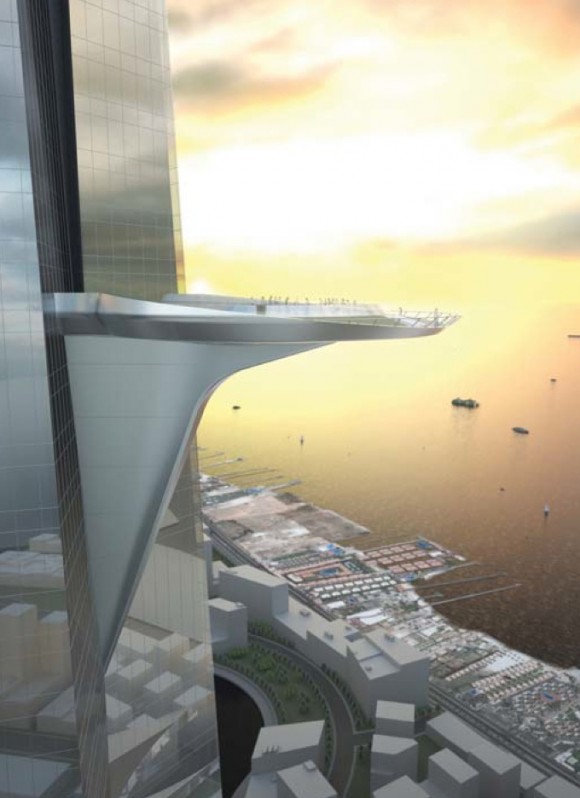 بــرج المملكة في جـــــــدة أطــــــول من أطـــــول بـرج فـي العـالمبعد شائعات تم تأكيدها ونفيها عدت مرات خلال الأعوام الماضية أكد الأمير وليد بن طلال اليوم عزمه بناء برج المملكة في جدة، والذي سيكون أطول برج في العالم بارتفاع يقارب الكيلومتر , سيزيد ارتفاع البرج عن 1,000 متر (أطول بـ 173 متر على الأقل من برج خليفة في دبي) وسيمتد على مساحة 530,000 متر مربع، وسيكون هذا البرج أولى مراحل بناء مشروع متكامل اسمه “مدينة المملكة” على مساحة 5.3 مليون متر مربع , سيتكلف البرج 1.2 مليار دولار (حوالي 4.6 مليار ريال سعودي) بينما سيتكلف مشروع المدينة حين اكتماله حوالي 20 مليار دولار!!يبلغ ارتفاع برج المملكة أكثر من 1,000 متر وهو من تصميم مجموعة Adrian Smith + Gordon Gill المعمارية التي يقع مقرها في مدينة شيكاجو الأمريكية، والتي شاركت في تصميم برج خليفة في دبي الذي يعد حالياً أطول برج في العالم بارتفاع 828 متر. من المتوقع أن يستغرق إنشاء البرج 63 شهراً، بينما سيستغرق المشروع بأكمله نحو عشر سنوات، وحسبما ذكرت الشركة فقد بدأت الإنشاءات في موقع البناء بالفعل من خلال مجموعة بن لادن للمقاولات التي ستدخل شريكاً في المشروع. سيحوي برج المملكة مساحة تبلغ 530,000 متر مربع يضم فيه فندق الفور سيزون ومساحات سكنية فاخرة ومكاتب ومتاجر، فضلاً عن وجود 59 مصعد و12 سلم متحرك ! سيضم البرج كذلك أعلى مرصد في العالم، حيث سيصل إليه الزوار باستخدام مصاعد تتحرك بسرعة 10 أمتار في الثانية لتستغرق الرحلة حتى أعلى نقطة في البرج حوالي دقيقة و40 ثانية !