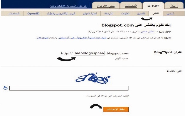 تغيير أسم المدونة من خاصية النشر ثم تقوم بحفظ الإعدادات