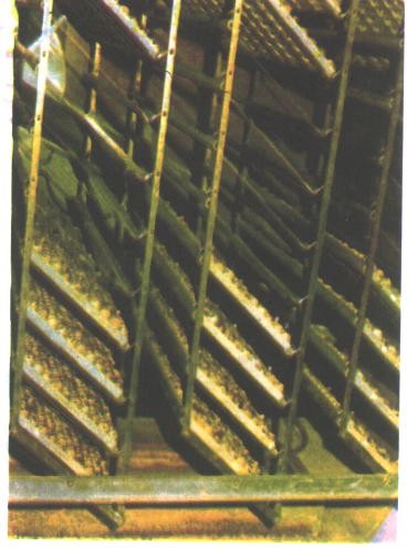4- درجة حرارة التفريخ 99-100 ف ( أ] حوالي 37ْ م) ورطوبة نسبية 60 65 % وفي الثلاث أيام الأخيرة تكون درجة الحرارة 98 99 ف ( أي حوالي5 ر36%م) ورطوبة نسبية 60-70 % .
