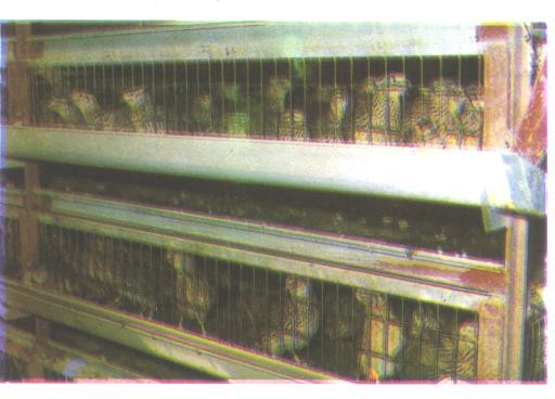 3- وهي أصغر حجماً من المخصصة للدجاج ومتعددة الأدوار ومكونة من أقفاص وأبعاد البطارية الواحدة حوالي 122 سم طويل 40 سم عرض ، 20 سم ارتفاع لكل دور ويكون ميل الأرض للأمام لتسهيل إنحدار البيض وجمعه من مجري خاص أمام الأقفاص . والمعالف والمساقي اللازمة لتربية السمان مشابهة للدجاج ويخصص معلفة بطول 1م لكل 20 طائر ومسقي أتوماتيكي لكل بطارية ذات أدوار متعددة .