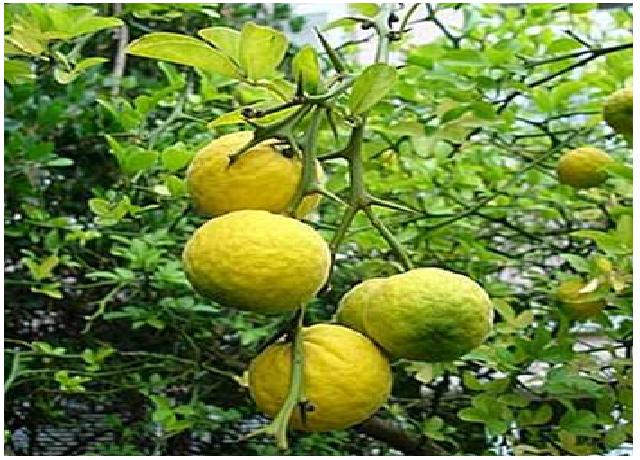 Die Zitrone تركي Limon ağacı فارسي لیمو شيرين العائلة السذابية Rutaceae لون الزهر ابيض و قرنفلي يصل ارتفاع الشجرة الى 7 م