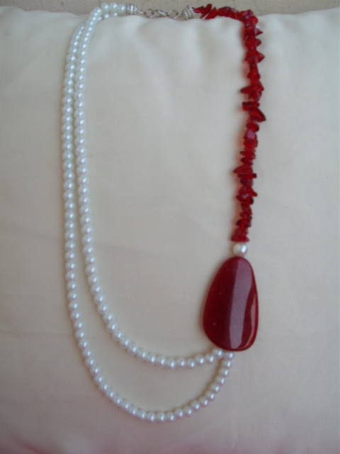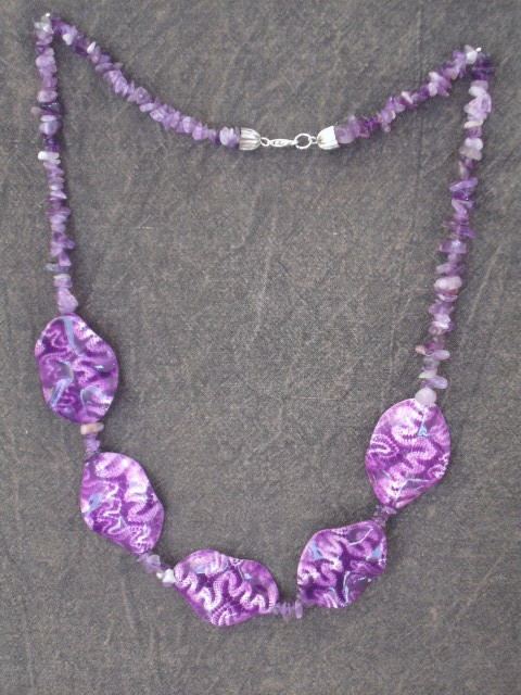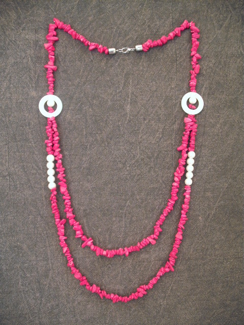 عقد كسر فيروزي مع أشكال من الصدف الأبيض