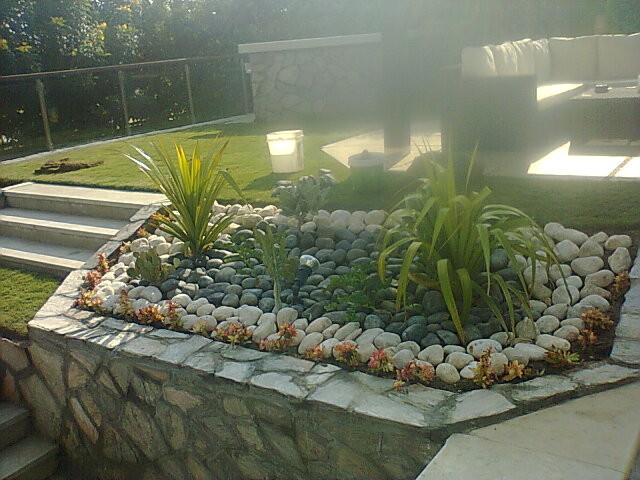 أسخدام الصخور مختلف الألوان والاحجام مع النباتات لاظهار جمال الطبيعه