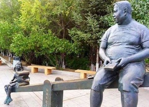 تمثال ظريف في اليابان يظهر أن وزنك و قيمتك ليس بعدد الكيلوغرامات فيك و لكن بعدد الكتب التي تقرأها .