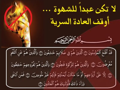 يجب الابتعاد عن العزله الاجتماعيه لان ذلك من شأنه اجبار الشاب على التفكير في هذه المحرمات ..لا تحاول ان تكون وحيدا ابداممارسه الرياضه بشكل منتظماشغال وقت الفراغ باي اشياء مفيدهيجب الابتعاد عن كل المؤثرات مثل التلفزيون والانترنت وبعض الاماكن التي تتواجد فيها الفتيات المتبرجات بكثافه ..عدم الخلود الي النوم الا اذا كنت متعبا جدا ..يجب مراقبة الله عز وجل في الخلوه وانه يراك وانت تفعل هذا الفعل المحرم ..حفظ الفرج سبب لدخول الجنه ..فجاهد نفسكلا تحاول ابدا لمس الاعضاء التناسليه ..الا بعد الحمام فقط ..