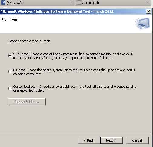 قم باختيار الاول وهو المسح السريع