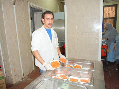 يتولى إعداد الوجبات وفق معايير غذائية خاصة بالمرضى يتولى المطبخ استلام الأطعمة وتنظيفها وطهيها حتى تغليفها حتى تصل لحجرة المريض