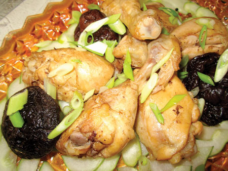 قطع لحم البط المقلد إلى قطع صغيرة واغمسه في دقيق الذرة. سخن الزيت في مقلاة وقم بتحمير قطع البط على نار هادئة حتى تصبح مقرمشة. ثم اتركها جانبا.