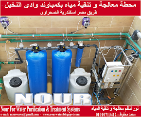 - و لمعالجة المشكلات التى قد تحتويها مياه البلدية فنرجو الاطلاع على هذا الرابط الذى يحتوى على نموذج لمحطة تنقية و معالجة قمنا بتنفيذها فى منطقة حدائق الفردوس ب 6 اكتوبر : https://nourwater.blogspot.com/2021/03/6.html