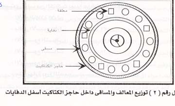 7- لايتم تقديم العلف فور وصول الكتاكيت بل يجب الانتظار من 2 - 3 ساعات حتى تتعرف الكتاكيت على المساقى وتشرب منها ويتم توزيع أطباق العلف والمساقى اليدوى داخل حاجز التحضين بالتبادل (الشكل رقم 2) .
