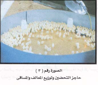 10- تفرش أرضية الجزء الخاص بالتحضين بالفرشة المناسبة وتركب المعالف والمساقى وتوضع الدفايات بالعنبر الذى تم تطهيره .