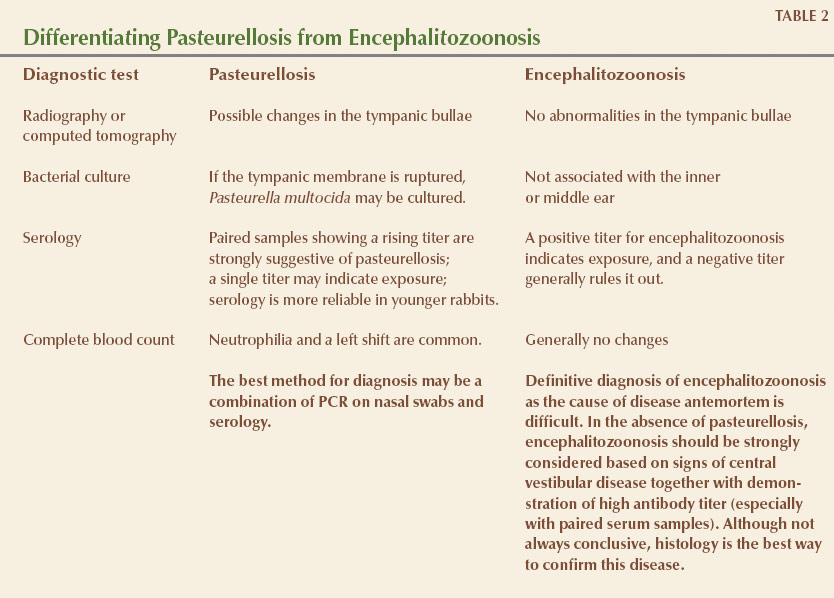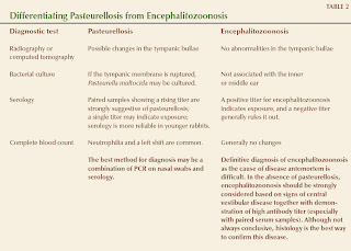 نتيجة لانتشار العدوى و تمكنها من الحيوان حيث نتقل بكتريا الباسترلا من التجويف الانفي للارنب الى الاذن الوسطى عن طريق قناة استاكيوس او من الممكن ان تهاجم البكتريا و تصيب المخيخ و النخاع المستطيل محدثة اعراض عصبية