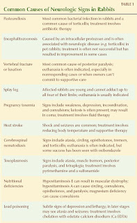 والان مع جدول لتجميع اهم الامراض العصبية للارانب