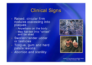 الأبقار العشار قد يحدث لها إجهاض مع ظهور الآفات الجلدية على الجنين.
