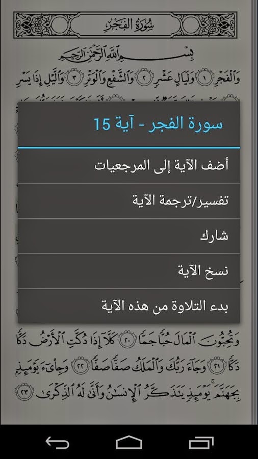 إمكانية مشاركة أي آية عبر برامج التواصل الاجتماعية .
