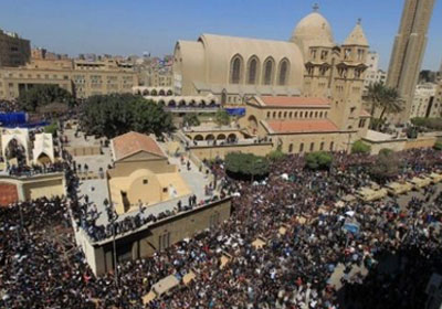 آلاف المسيحيين تدافعوا نحو مقر البابوية بالعباسية بعد سماع خبر وفاة البابا. إيه.بي.إي