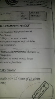 شاهدو بعد استخدام التركيبه ولمدة اسبوع فقط توضح ذوبان حصوة الكلى تماما ونقص حجم حصوة المراره من 14 الى 10 مليمتر.