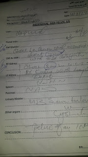 ايضا هناك حاله نادره حيث كانت تعاني من حصوات في الكى والمراه قي ان واحد وهذه صوره توضح كم حجم حصوة المراه والكلى