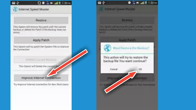 تطبيق internet speed masterهذا التطبيق مفيد جدا خصوصا إن كنت تعاني من مشكلة بطء في التحميل ، حيث يقوم التطبيق بالتعديل على ملفات النظام لتحسين الاتصال في TCP و IP ، وبالتأكيد سوف يتطلب منك صلاحيات الروت ، كل ما عليك هو تحميل التطبيق و تقوم بالولوج إليه ومن ثم تسمح للتطبيق بالوصول إلى صلاحيات الروت و بعدها تنزل أسفل إلى خيار No Root تقوم بالضغط عليه و بعدها سوف ينبثق نافذة تضغط على Ok ، بعدها سوف تلاحظ فرق كبير جدا في سرعة التحميل.