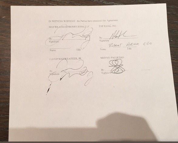 Floyd Mayweather announces fight with a photo of the signed contract. (via @FloydMayweather/Shots)