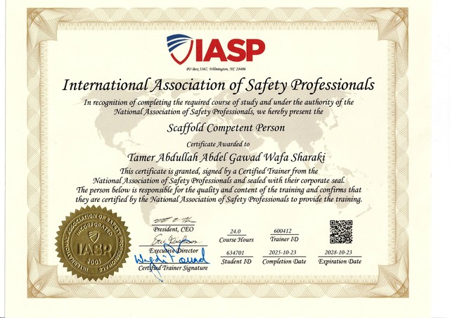 دكتوراه في السلامة والصحة المهنية Delaware City University ماجيستير في ادارة اعمال الأمن والسلامة University of Paddington United Kingdom Bachelor of Safety Engineering دبلوم عالي المعهد الوطني للسلامة والصحة المهنية المملكة المتحدة National Institute of Occupational Safety and Health UK ماستر دبلومة في التدريب اكاديمية ليدز المملكة المتحدة Master's »